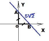 Напишите уравнение прямой, проходящей через первую четверть и отсекающей на осях координат равные отрезки, если длина отрезка этой прямой, заключенного между осями координат, равна 5√2.