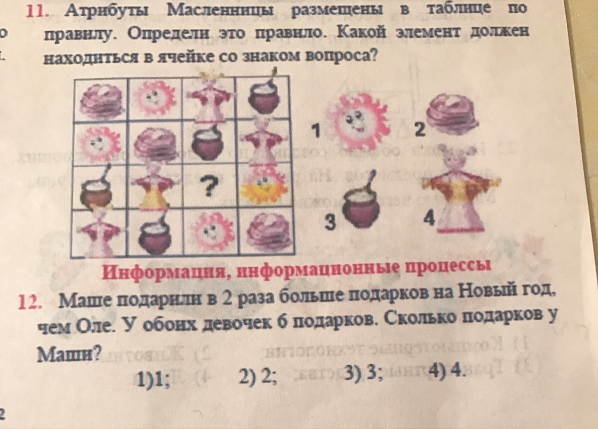 11 НОМЕР. На месте вопросительного знака должен стоят атрибут под номером "2" (Блины)