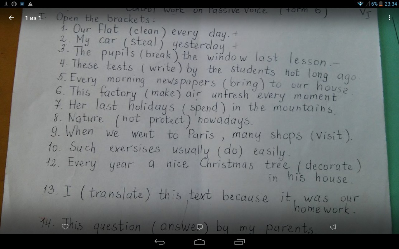 Только форму глагола. например 1 предложение форма 1. is cleaned