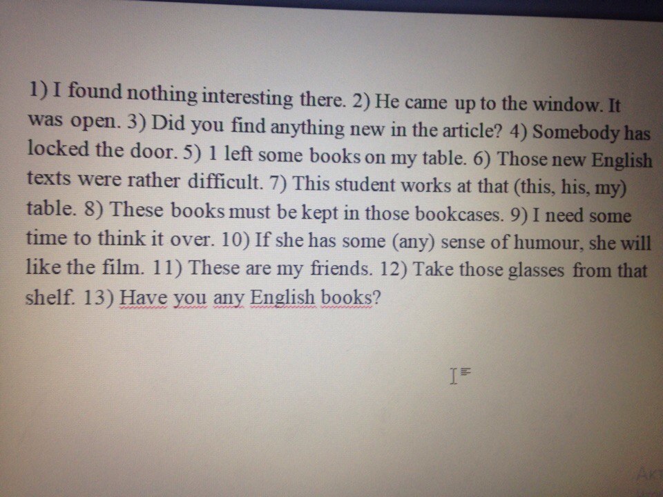 the film. 11)... are my friends. 12) Take ... glasses from that shelf. 13) Have you ... English