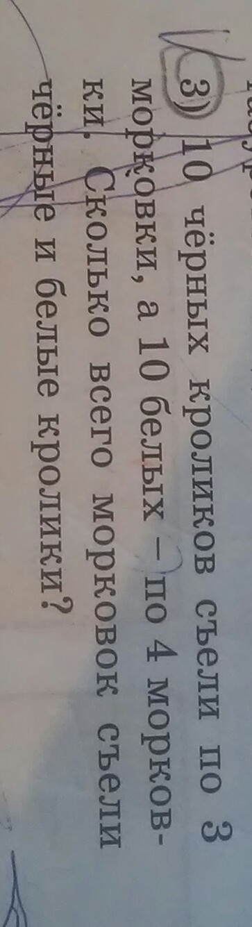 10 умножить на 3 =30 (морковок)- съели черные кролики .