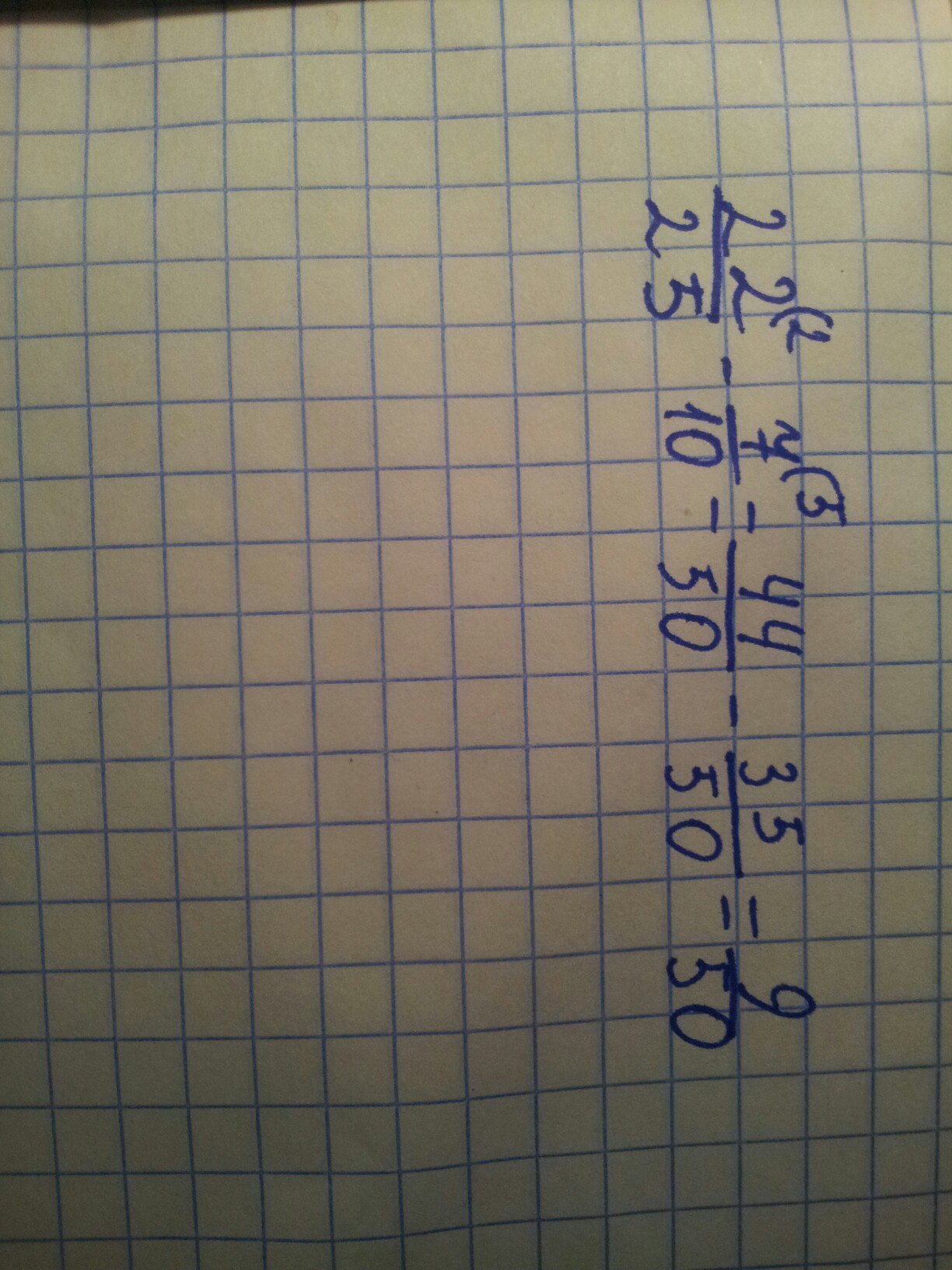 22/25 - 7/10 = 44/50 - 35/50 = 9/50