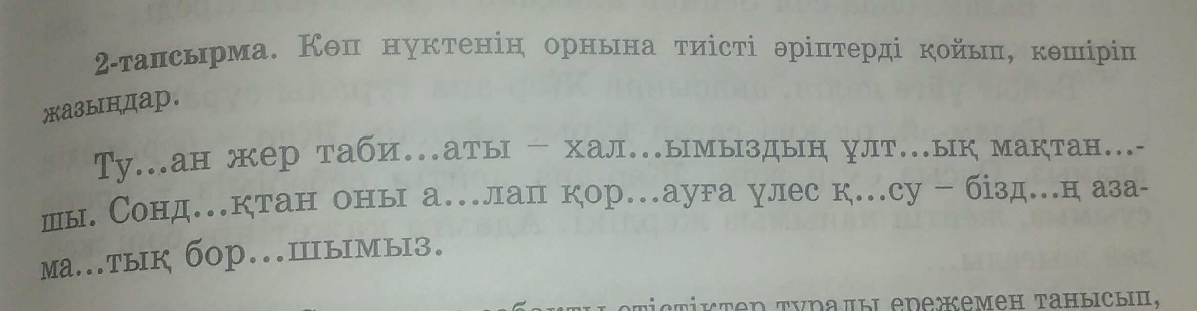 Туған жердің табиғаты - халқымыздың ұлттық мақтанышы. Сондықтан оны аялап қорғауға үлес қосу - біздің азаматтық борышымыз.