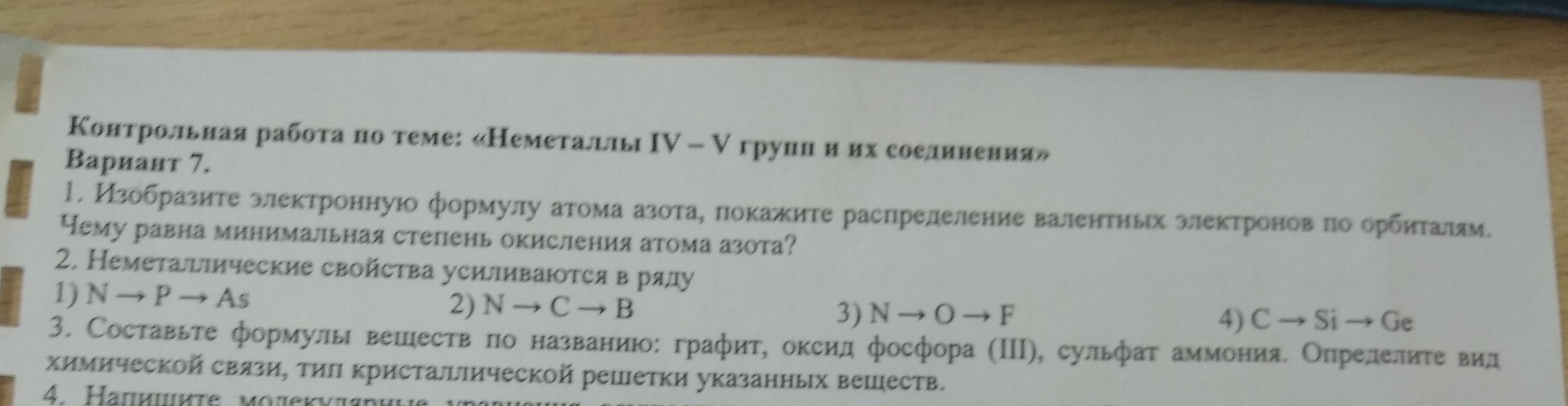 В азоте минимальная С.О. 1, т.к. при ослаблении энергии атома, электрон может "перескочить", образуя пару, а валентный электрон останется один.