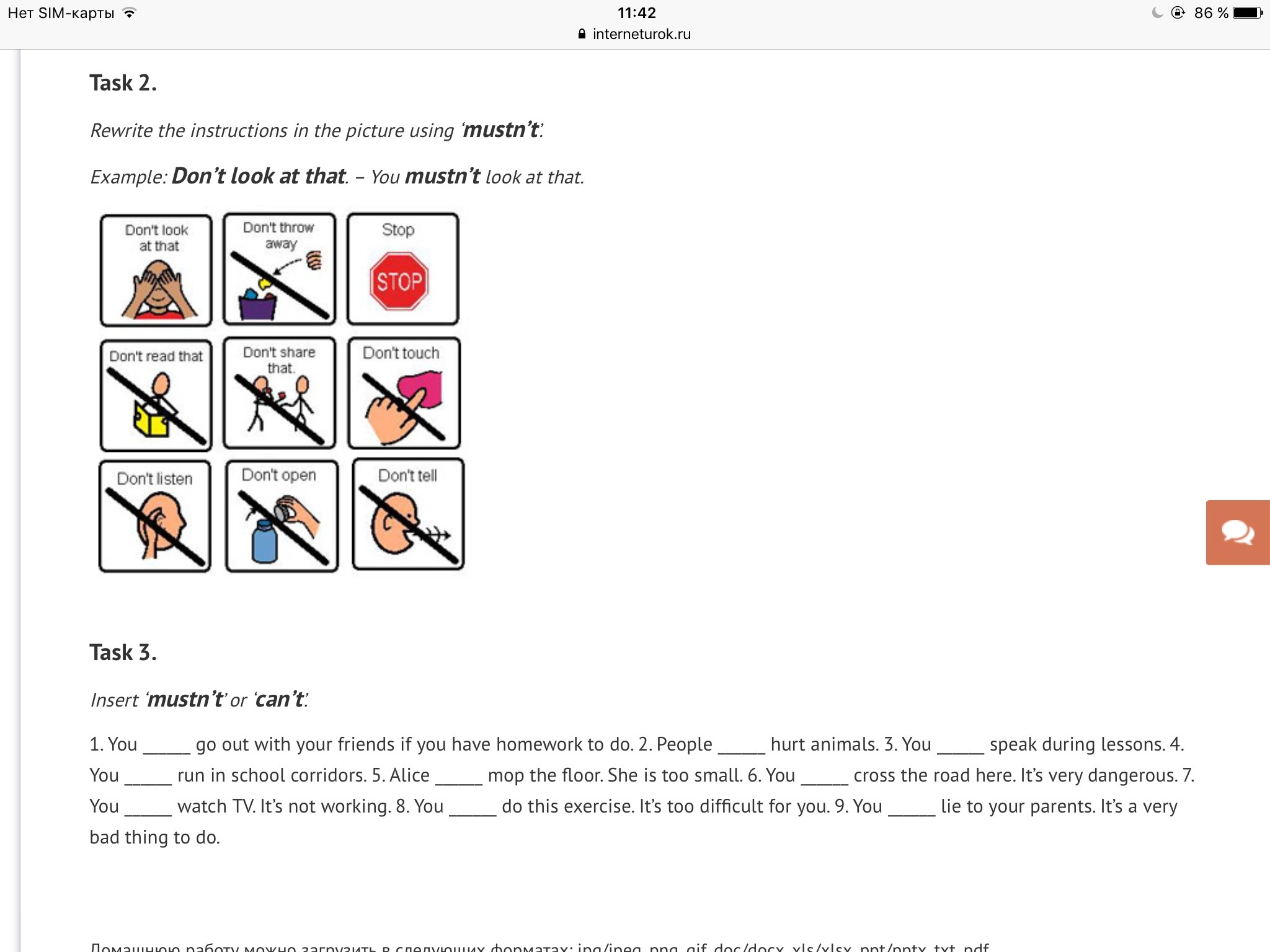 2) mustn't