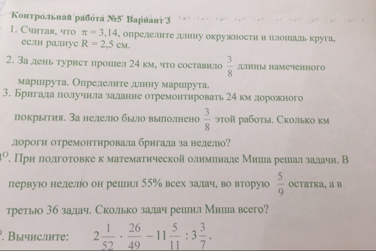 15,7 т.к длина окружности равна 2pr получим 2*3,14*2,5