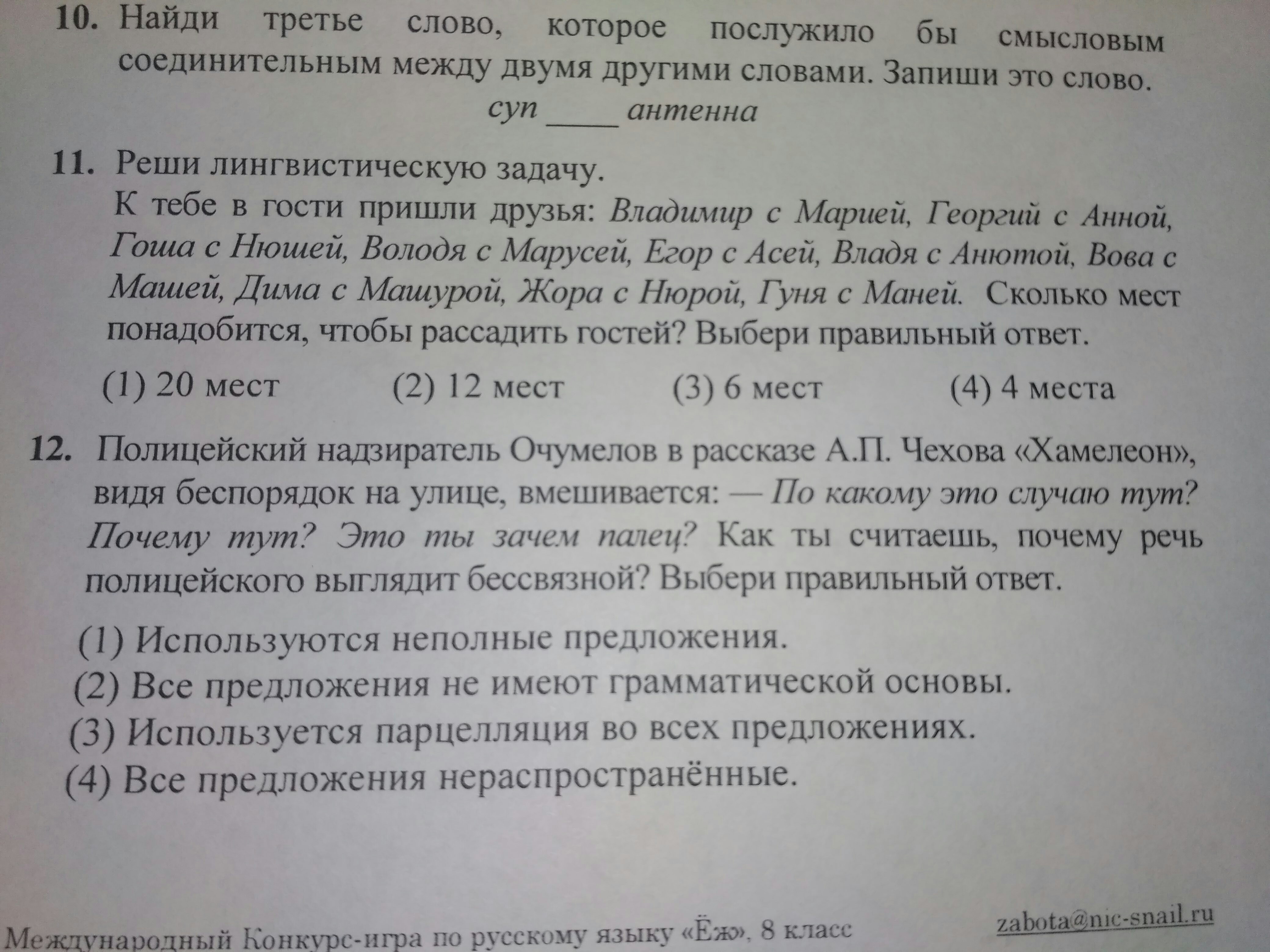В двенадцатом 1 ответ) неполные предложения