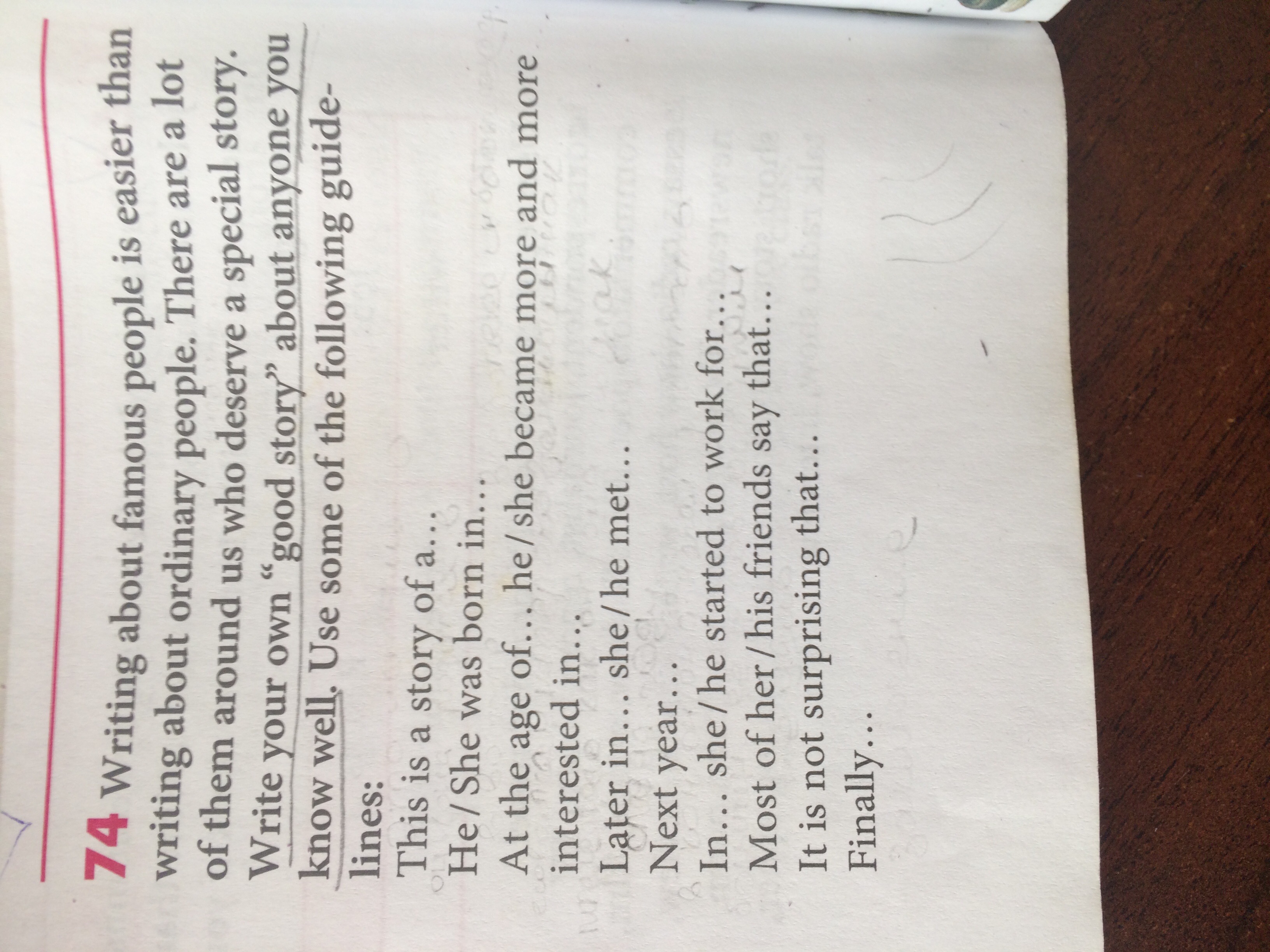 Писать о знаменитых людях проще, чем писать о простых людях. Их очень много, которые заслуживают особой истории. Напишите свою «хорошую историю» о том, кого вы хорошо знаете. Используйте некоторые из следующих руководств: