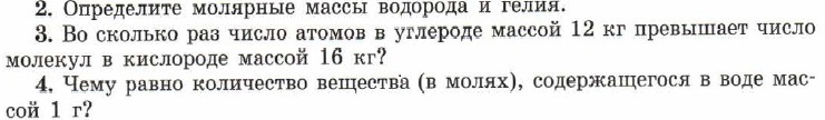 1) водород(атом 1*10^-3 кг/моль, молекулы 2*10^-3 кг.моль)