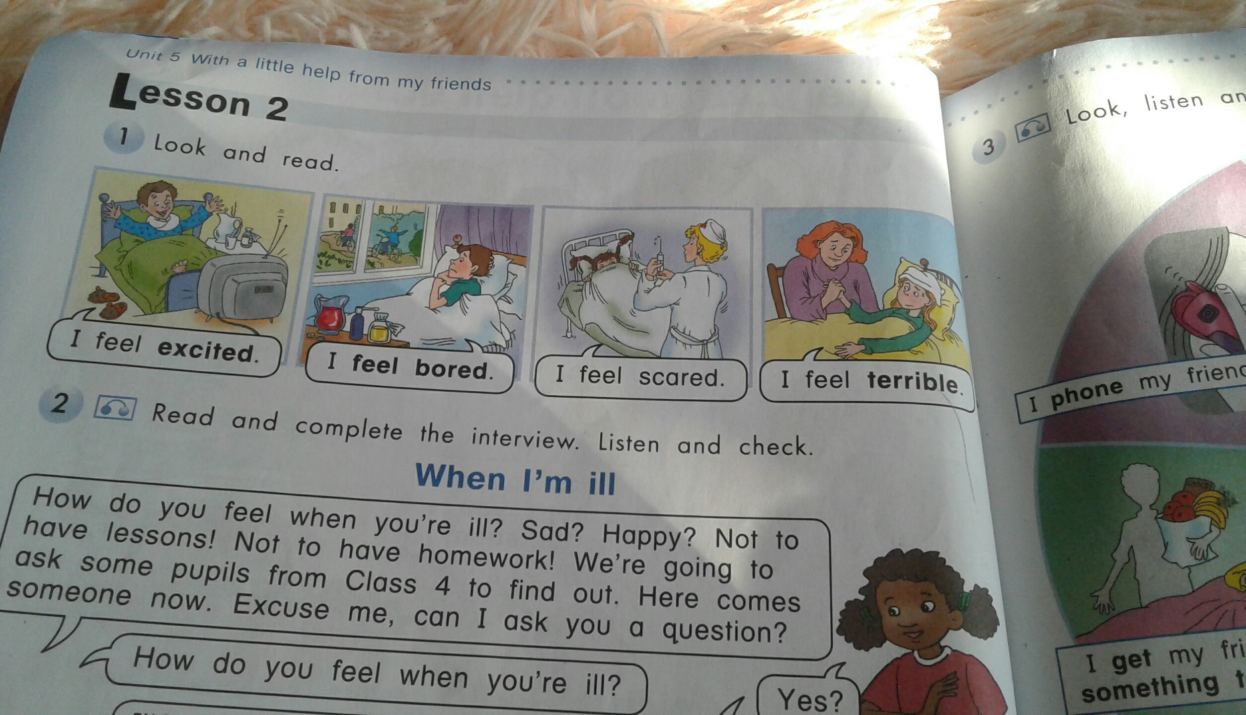 when i get up i feel bored, and in the school i feel excited