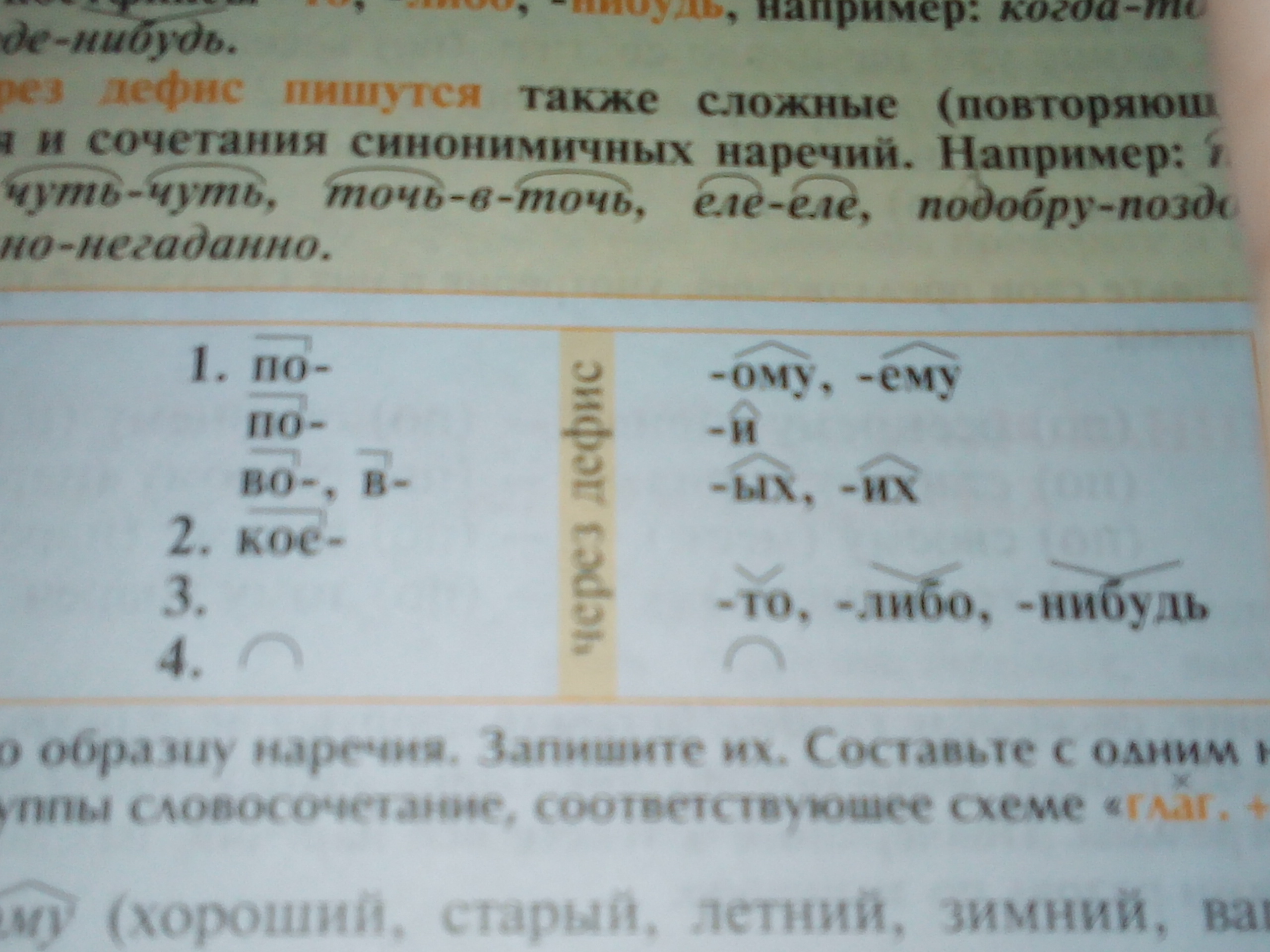 д)Кое-где,кое-как;Как-то,откуда-то,куда-нибудь,почему-то,сколько-нибудь,зачем-либо. Учиться кое-как.