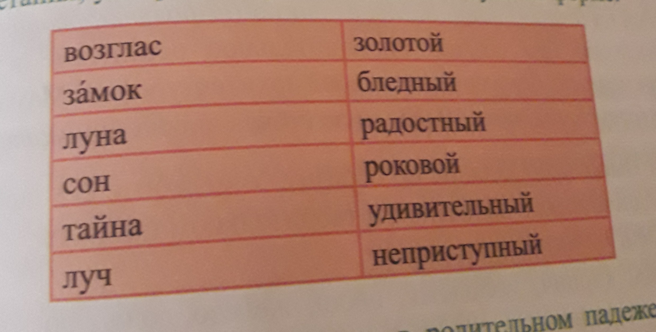 используя слова из правой и левой частей таблицы составьте словосочетания употребляя прилагательные в нужной форме