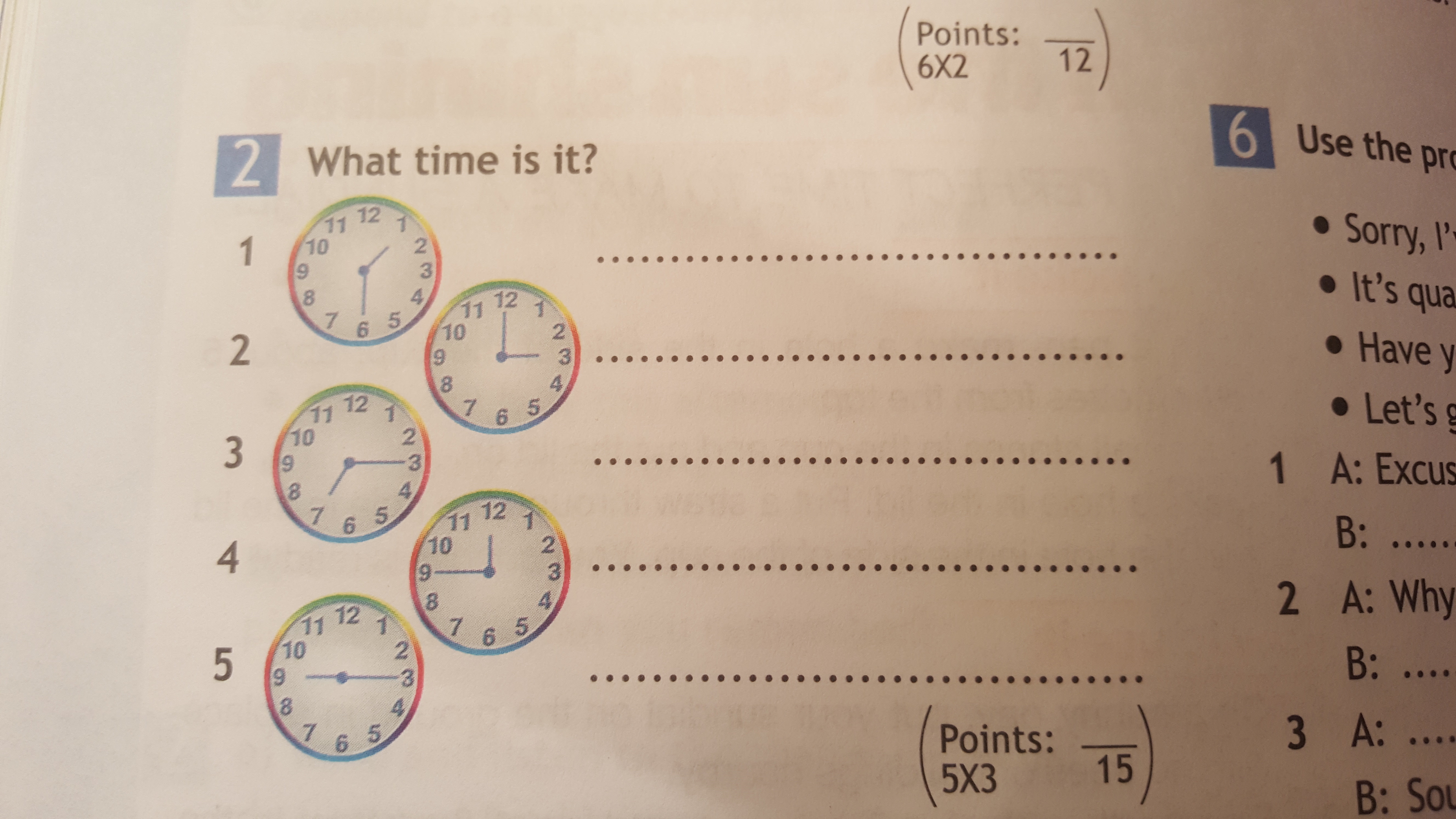 2) three o'clock