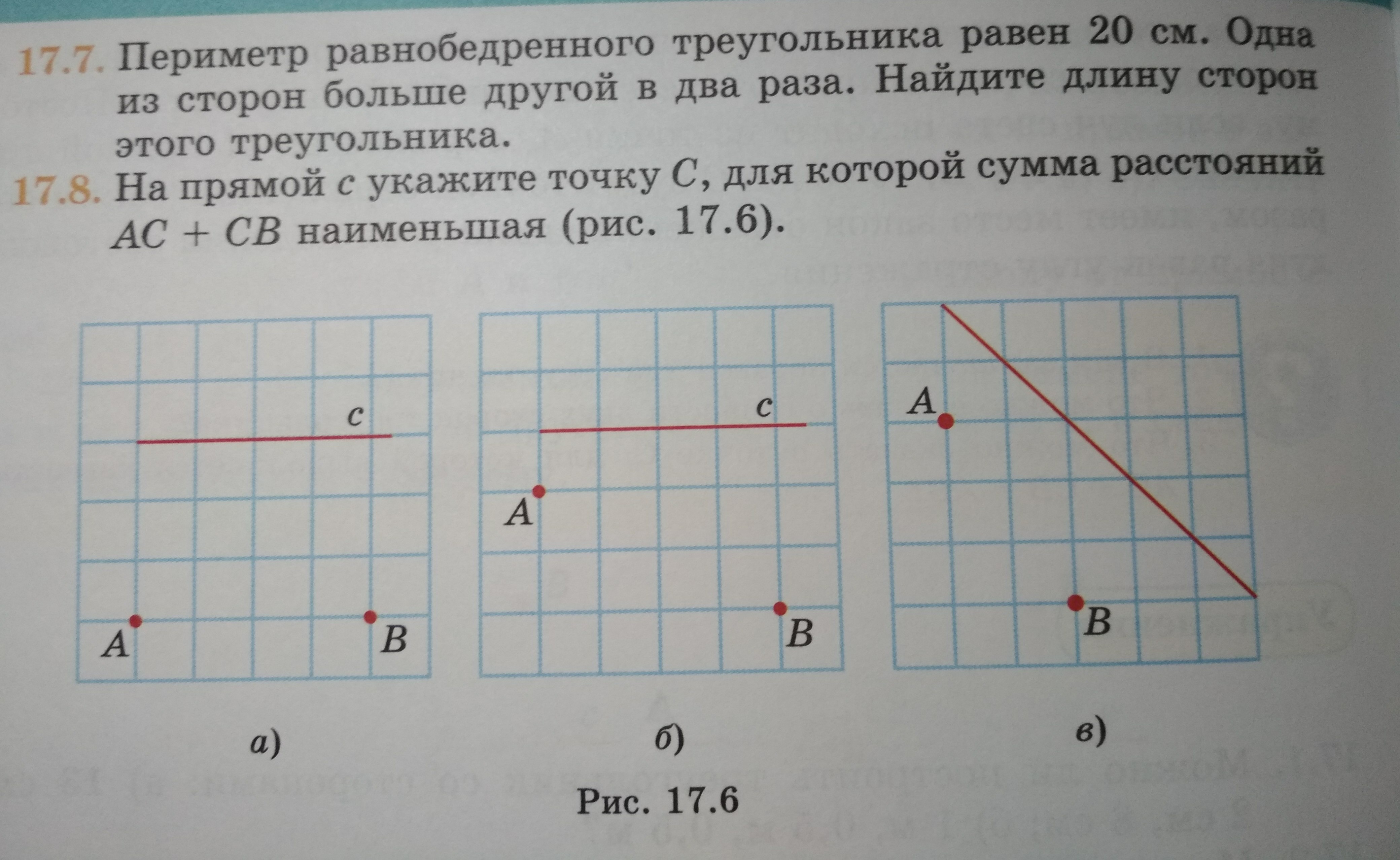 2. Отметь на красной линии точку С, чтобы сумма расстояний от этой точки до точек А и Б была самая маленькая