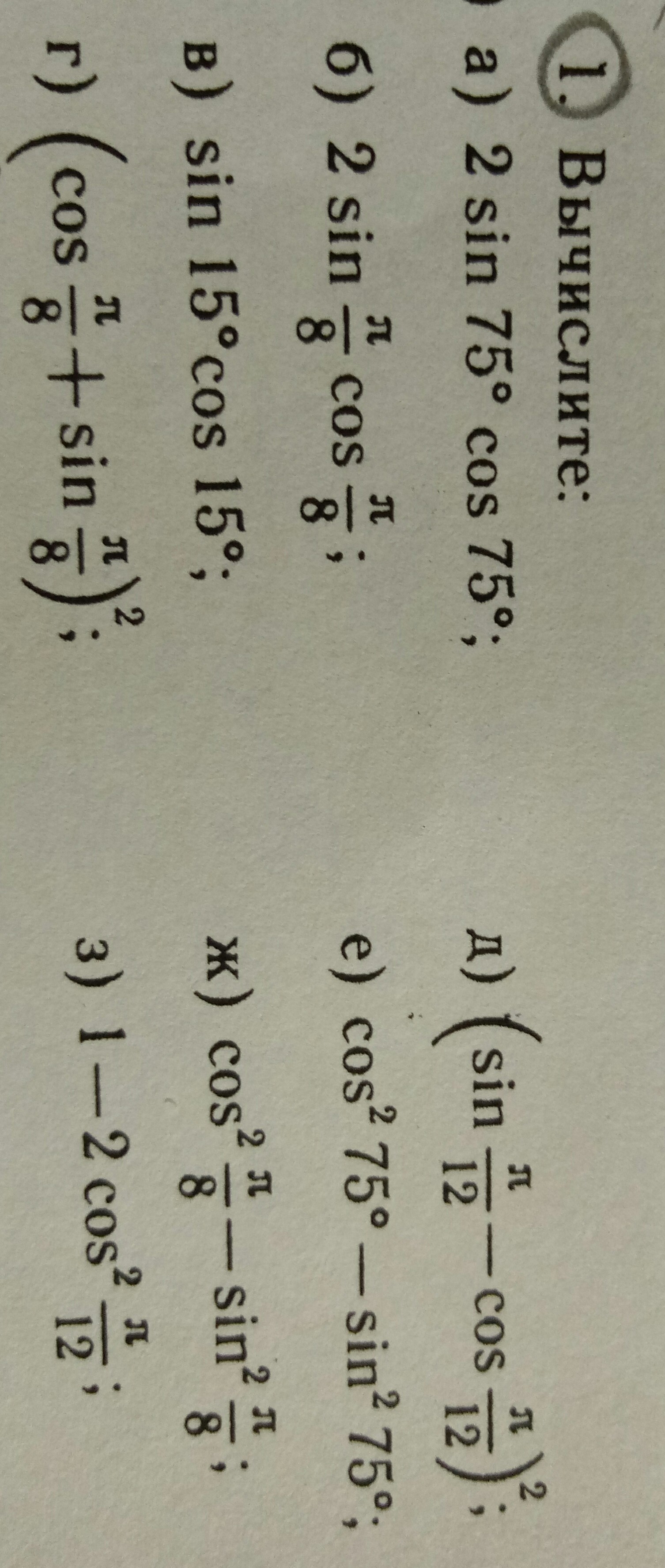 h)1-cos² π/12 - cos² π/12 = sin² π/12 - cos ² π/12 = -cos π/6= -√3/2