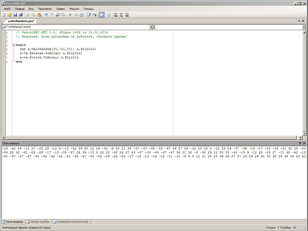 var a:=ArrRandom(45,-50,50); a.Println;