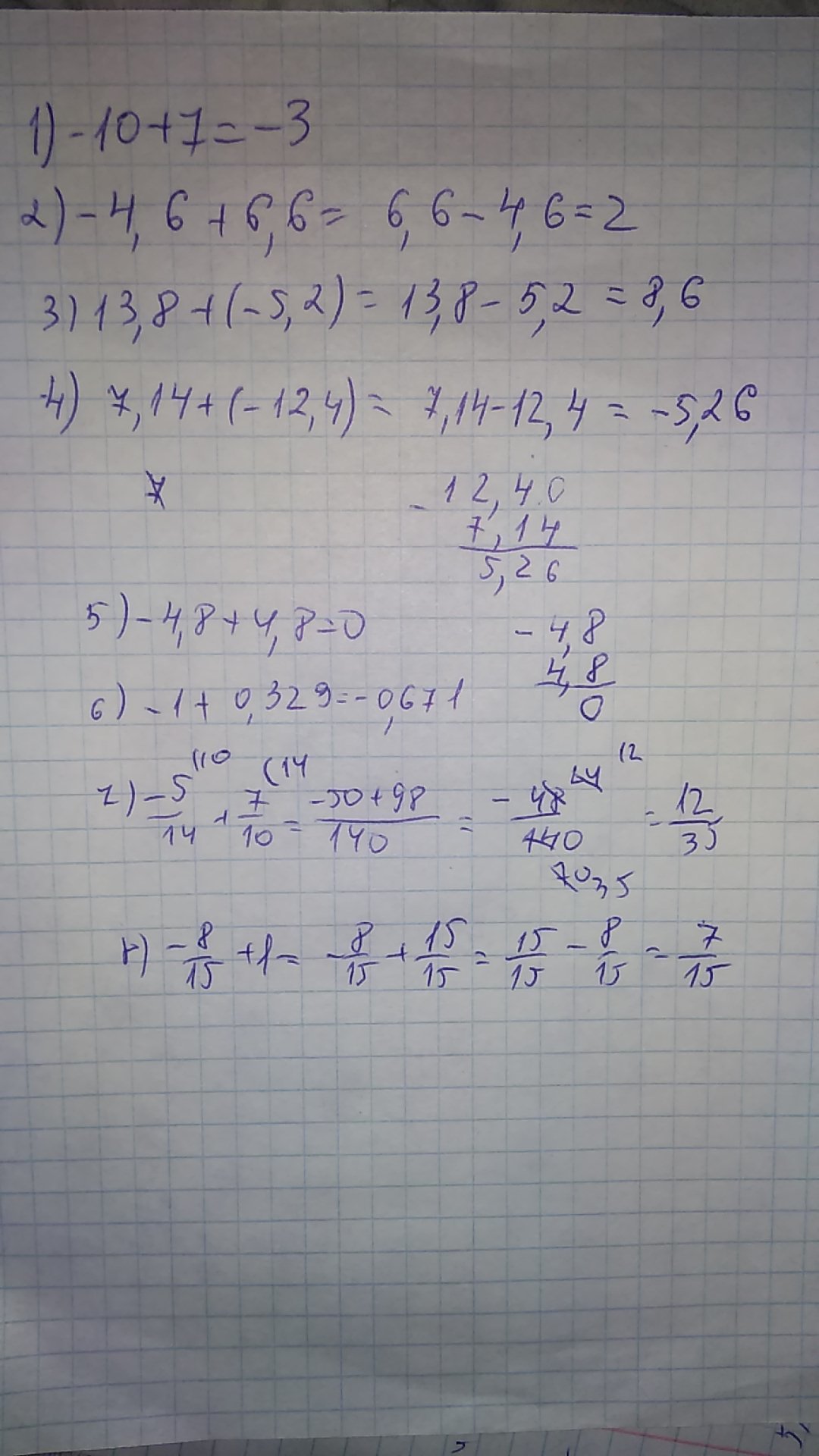 4)7,14 + (-12,4)=7,14-12,4=-5,26
