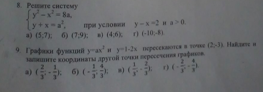 8. б) - просто подставьте данные числа во второе уравнение. а - число рациональное, потому, скажем, вариант а) не подходит.
