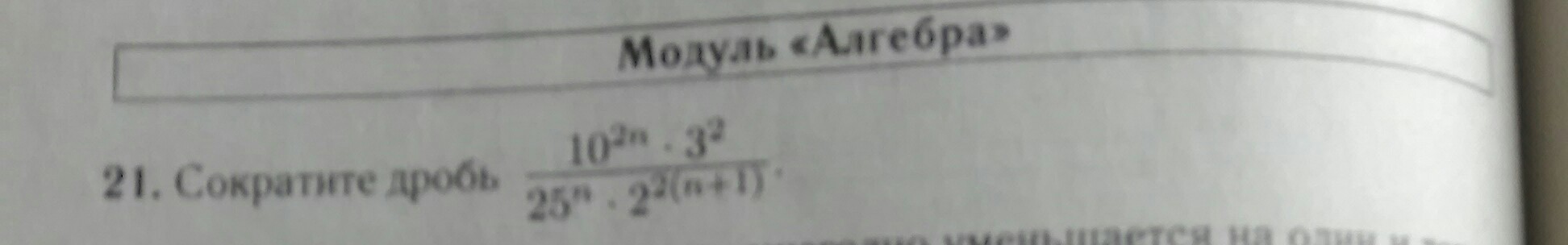 знаменатель = 25ⁿ * 2²⁽ⁿ⁺¹⁾=25ⁿ * 2(²ⁿ⁺²) = 25ⁿ * 2²ⁿ * 2² = 25ⁿ *4ⁿ * 4=