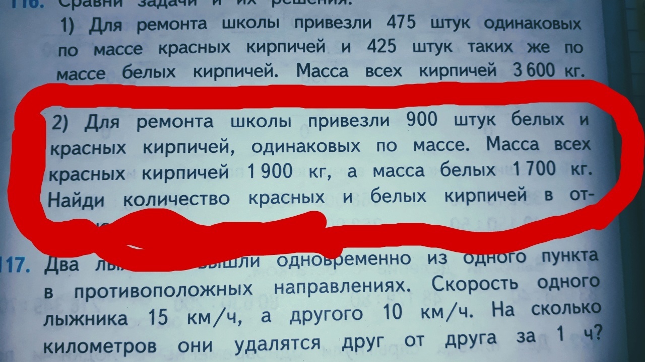 узнаем вес всех кирпичей 1 900 кг + 1 700 кг =3 600 кг,