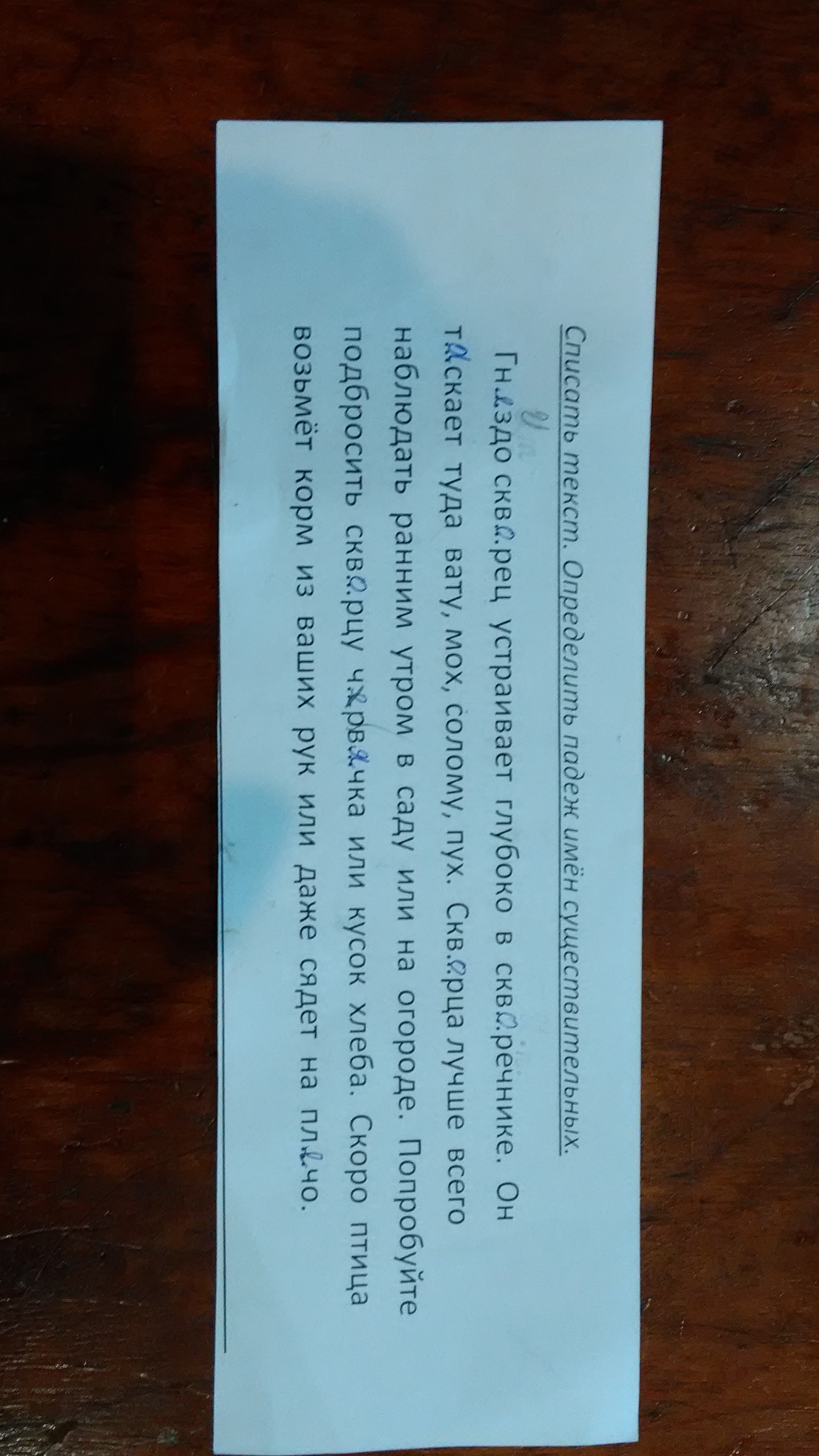 Гнездо(В.п.) скворец(И.п.) устраивает глубоко в скворечнике(П.п.).