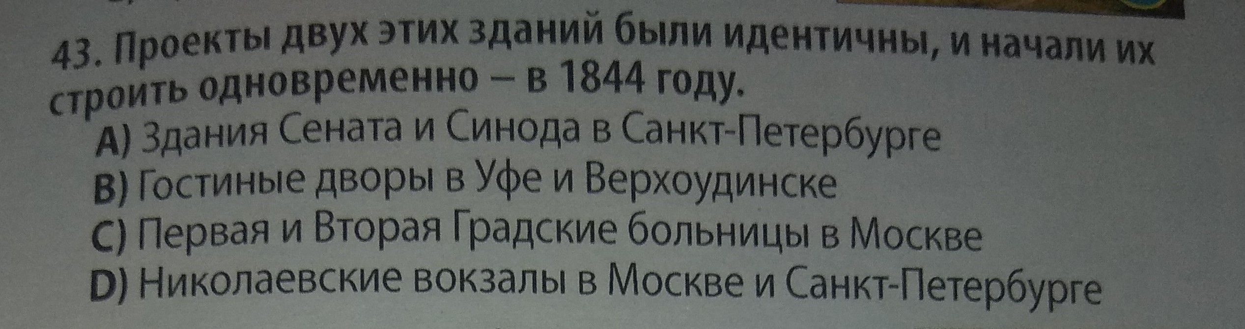 Это ответ D) Николаевские вокзалы в Москве и Санкт Петербурге