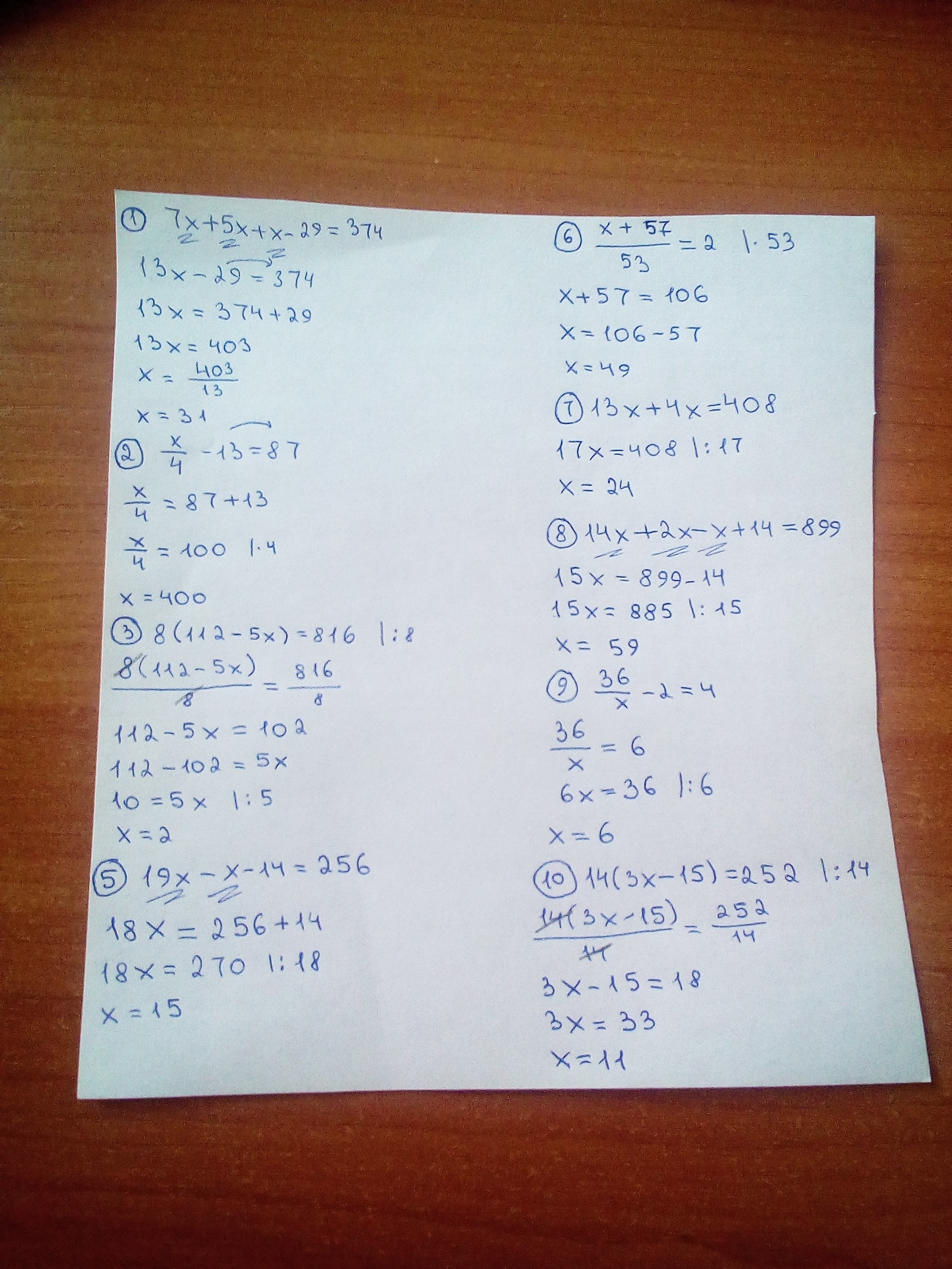 6. Частное суммы чисел x и 57 и числа 53 равно 2