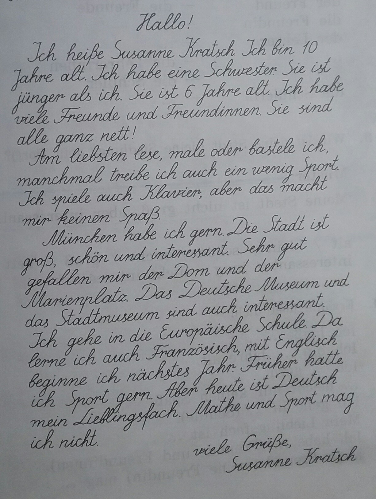 Меня зовут Сюзанне Кратч. Мне 10 лет. У меня есть сестра. Она младше меня. Ей 6 лет. У меня много друзей и подруг. Они все просто прелесть.