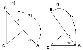 1). СВ=1/2АВ=14/2=7 (как катет, лежащий против угла в 30°)