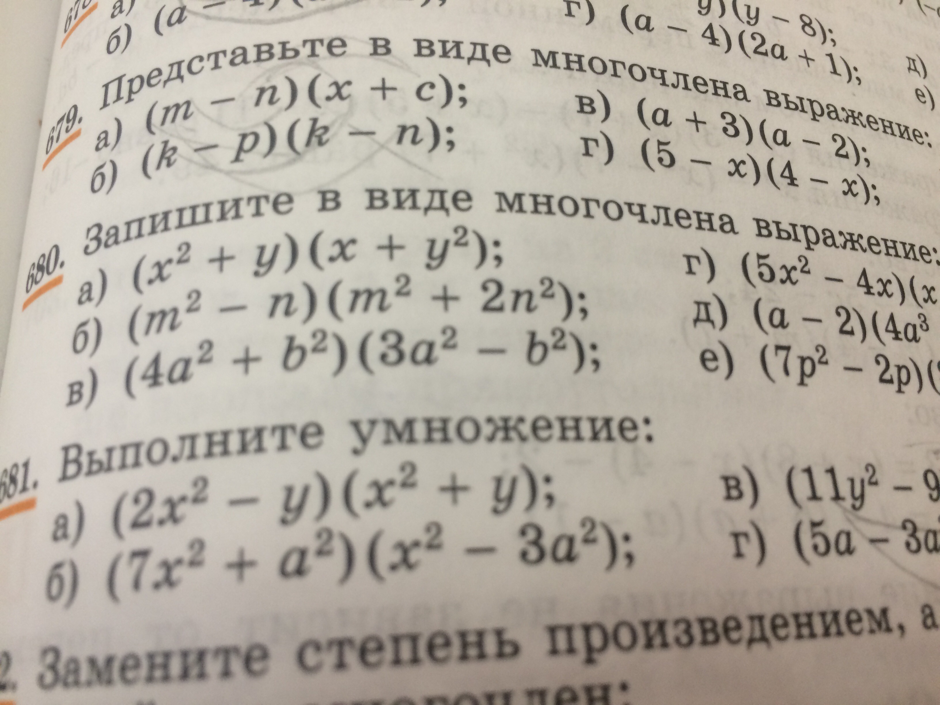 Упр.680, вопрос А) (х2+у)(х+у2) Срочно!!! Пожалуйста!!! В виде многочлена!!! Помогрииите!