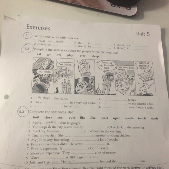 4 play tennis-играть в теннис,5 go to the cinema a lot-идти в кино,6 sleep seven hours a night-спать семь часов в сутки