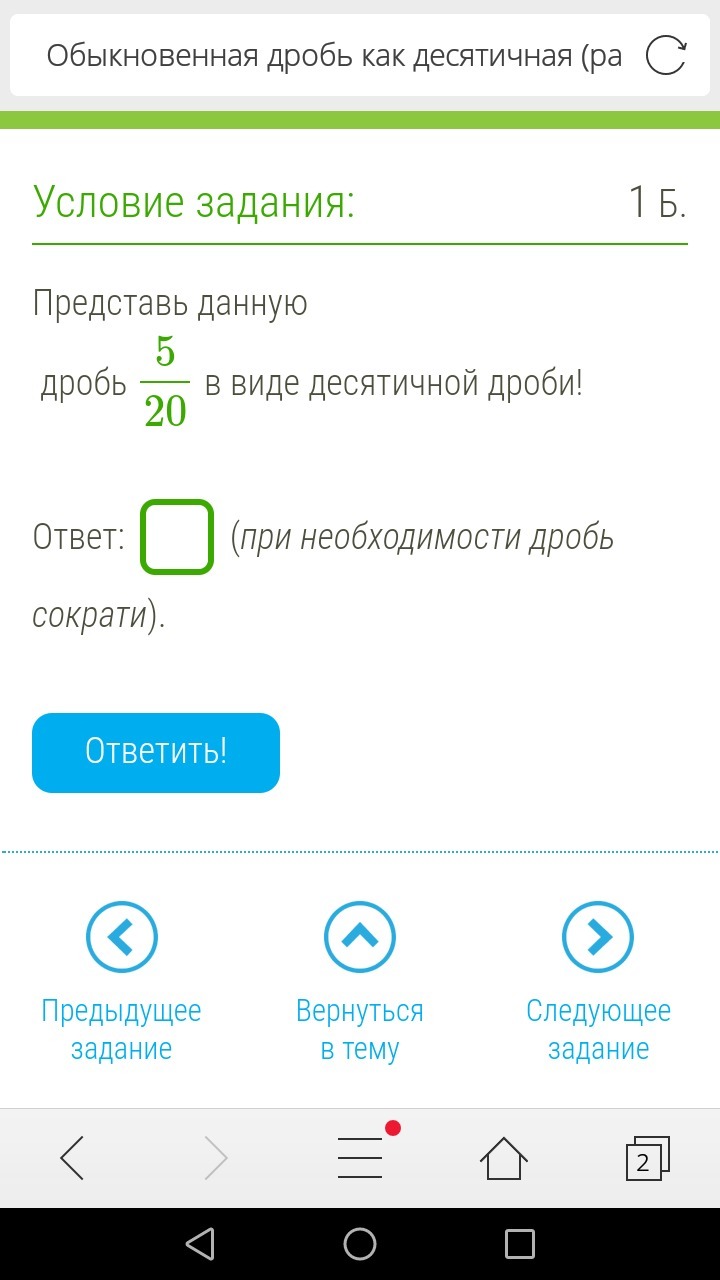 Мы сократил эту дробь на 5 , и получилось 1/4=0,25