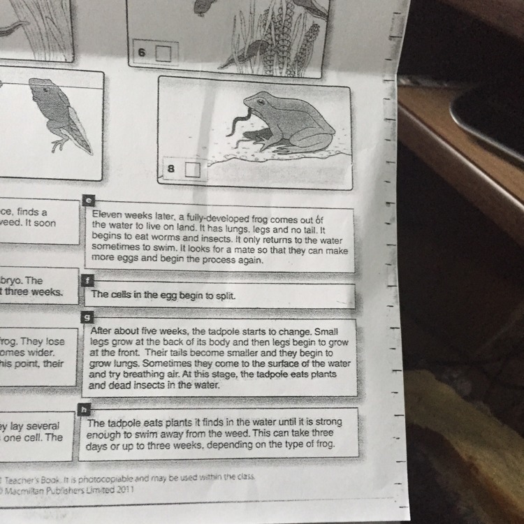 e. Через 11 недель полностью развитая лягушка выходит из воды для проживания на суше. У нее есть легкие, лапки и нет хвоста. Она начинает поедать червяков и насекомых. Только иногда она возвращается в воду, чтобы поплавать. Лягушки ищут партнера и поэтому могут откладывать больше яиц и начинать процесс заново.