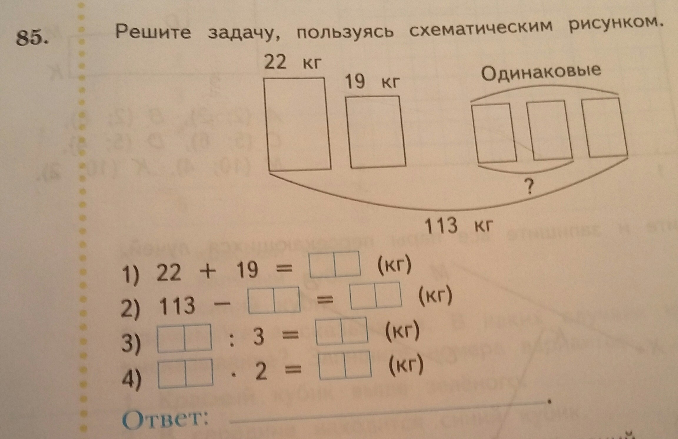 2) 113 - 41 =72 (кг) в маленьких прямоугольниках