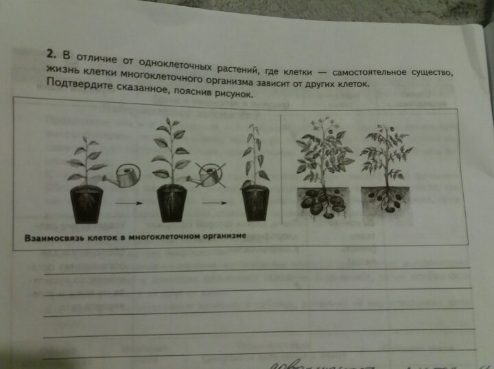 В отличие от многих растений, где клетка - самостоятельное существо, жизнь клетки многоклеточного организма зависит от других клеток. Подтвердите сказанное, пояснив рис.