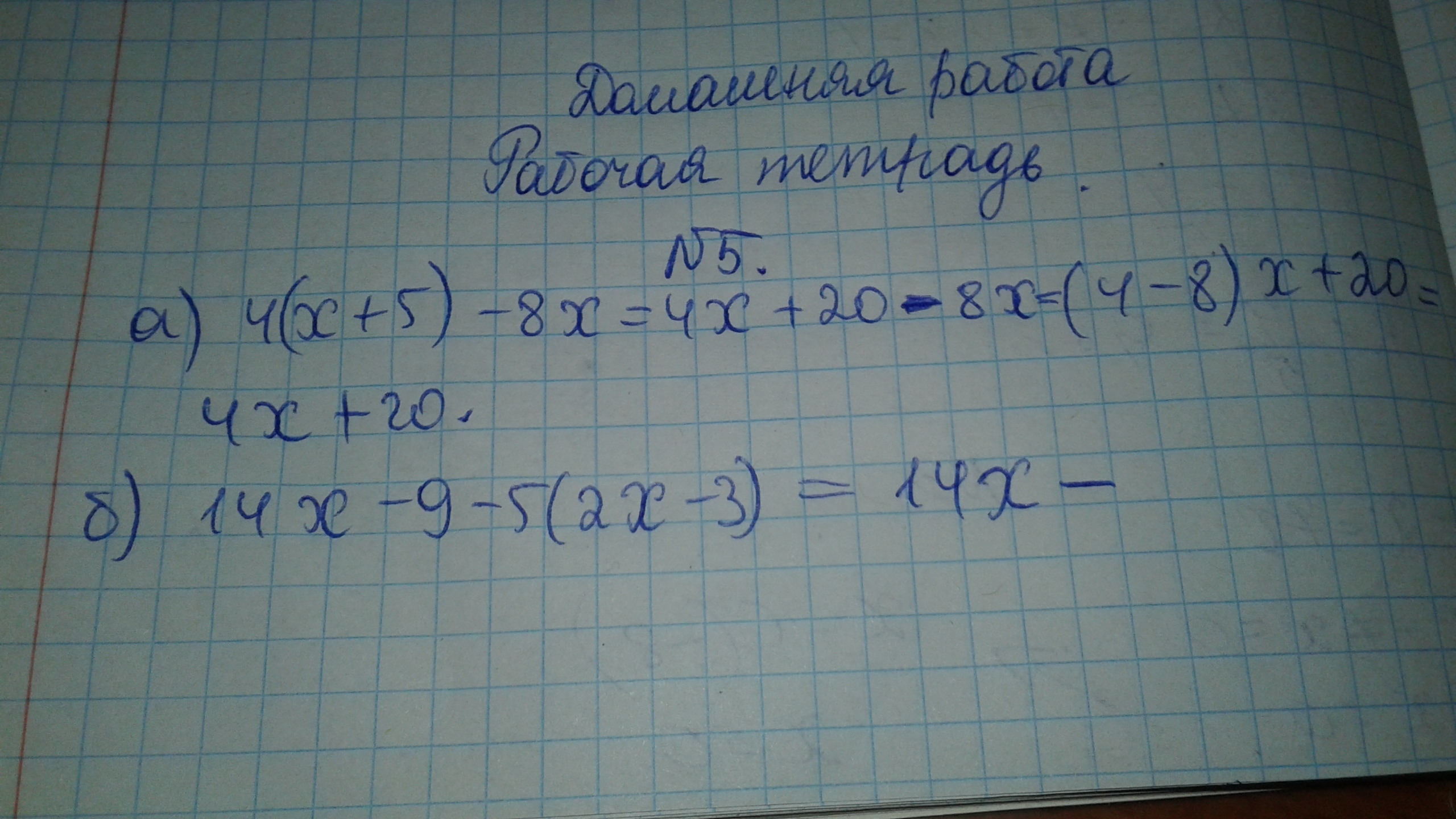 ты скобки раскрываешь получаешь 20 ,получается 4*Х+4*5-8х ,4*5=20 ,