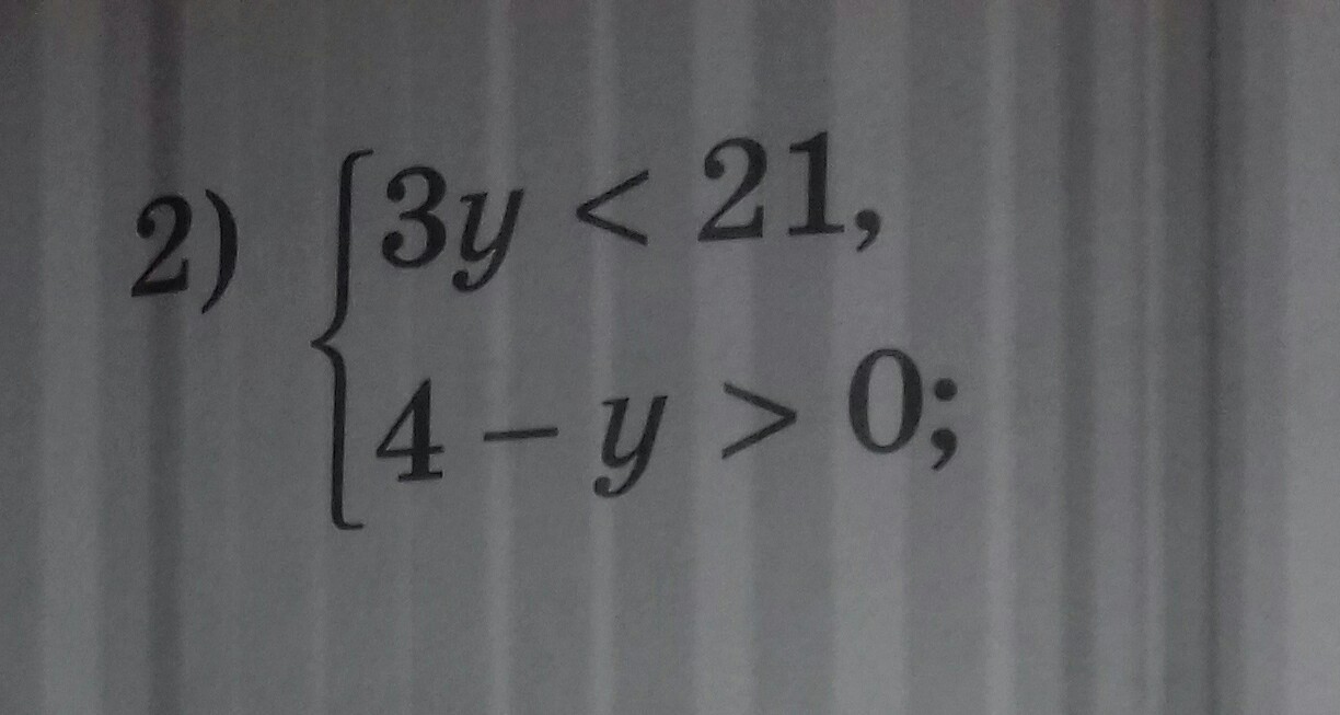 (4;7) по скольку 3y меньше 21 y меньше 7, а во втором 4-y больше нуля значит y меньше чем четыре