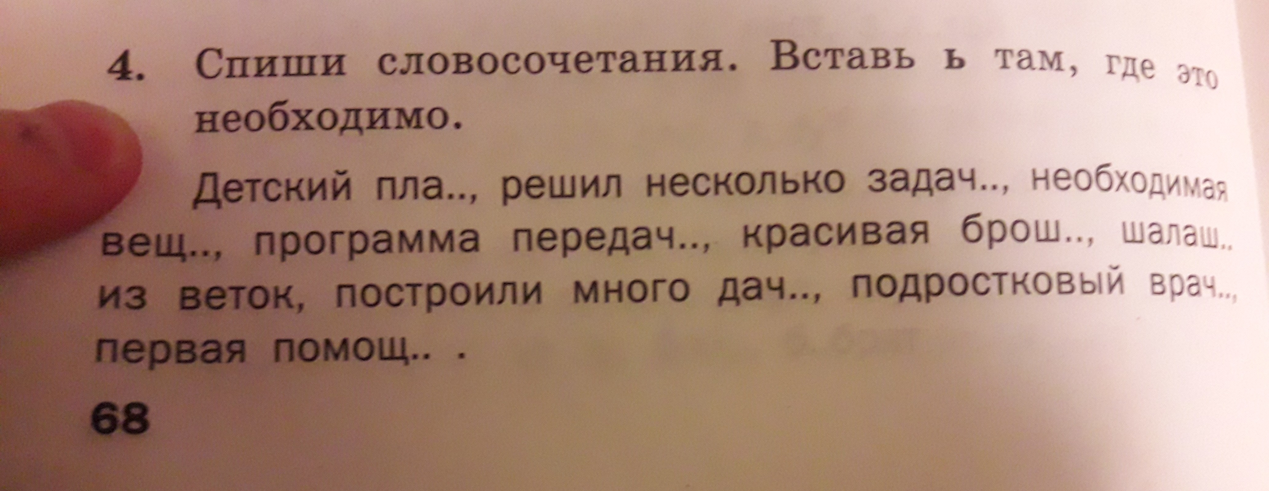 Детский плач, решил несколько задачь, необходимая вещь,программа передачь, красивая брошь,шалаш из веток , построили много дачь,подростковый врач, первая помощь.