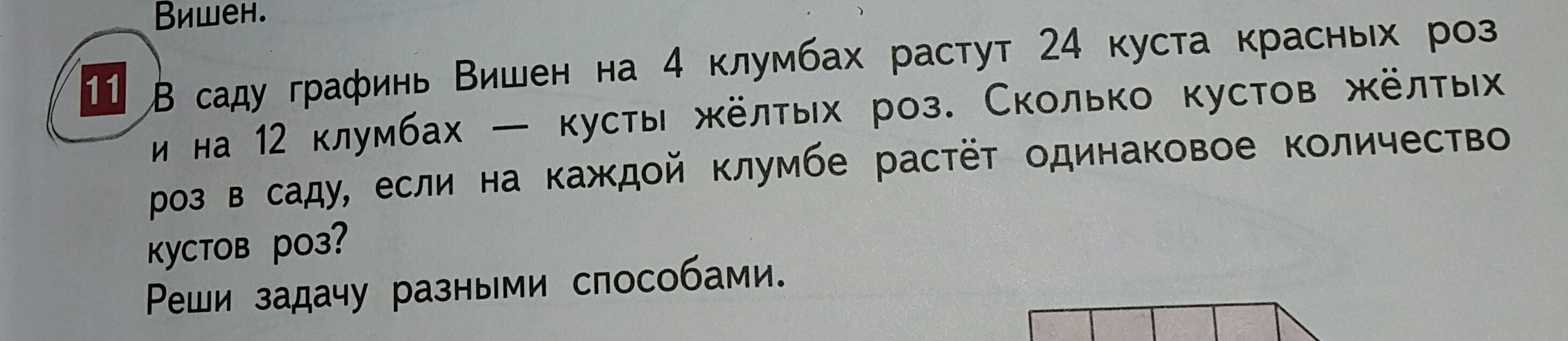 1)24:4=6 (роз)- растет 1-ой клумбе