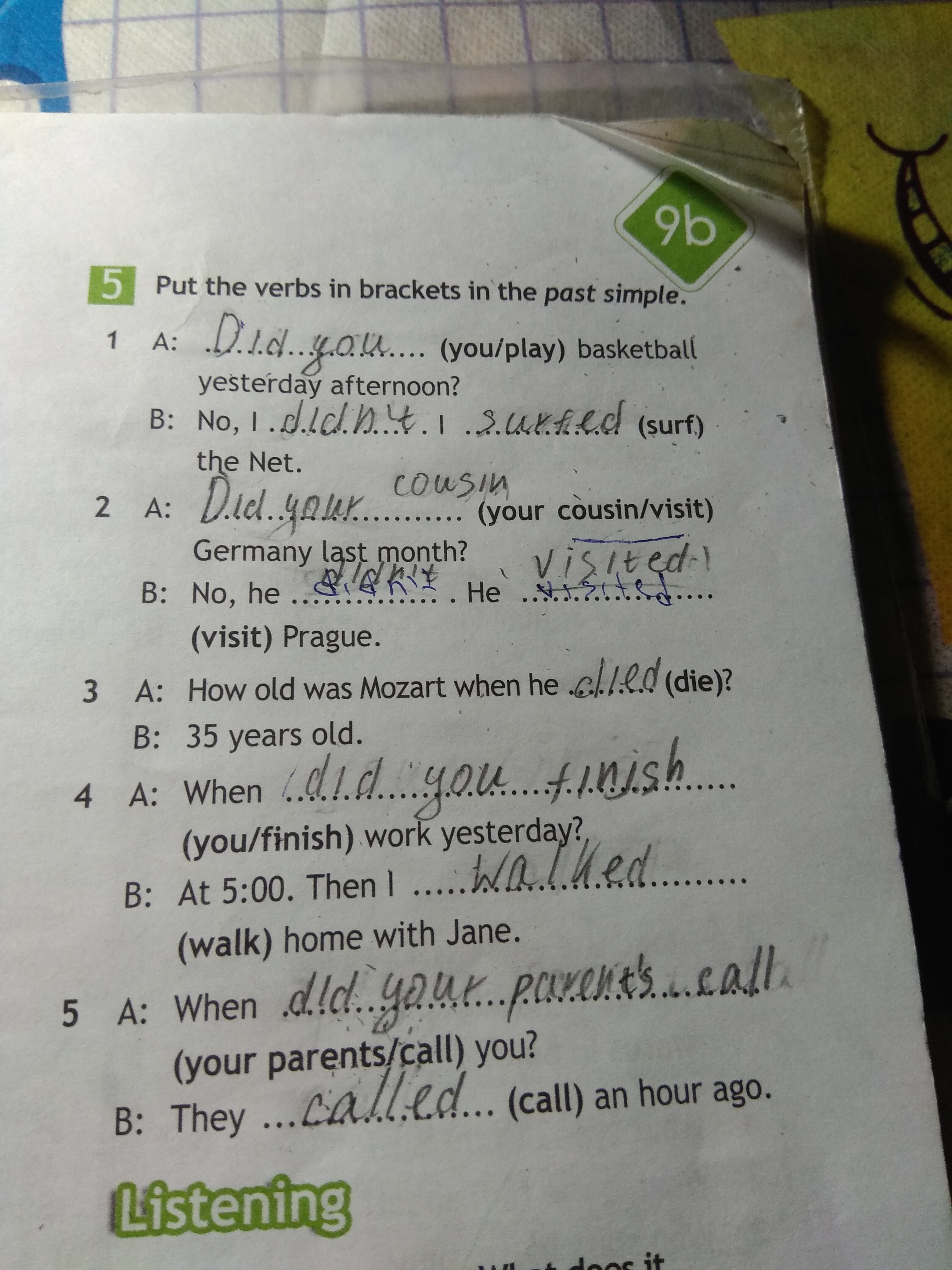 1.Ты играл в баскетбол вчера вечером?