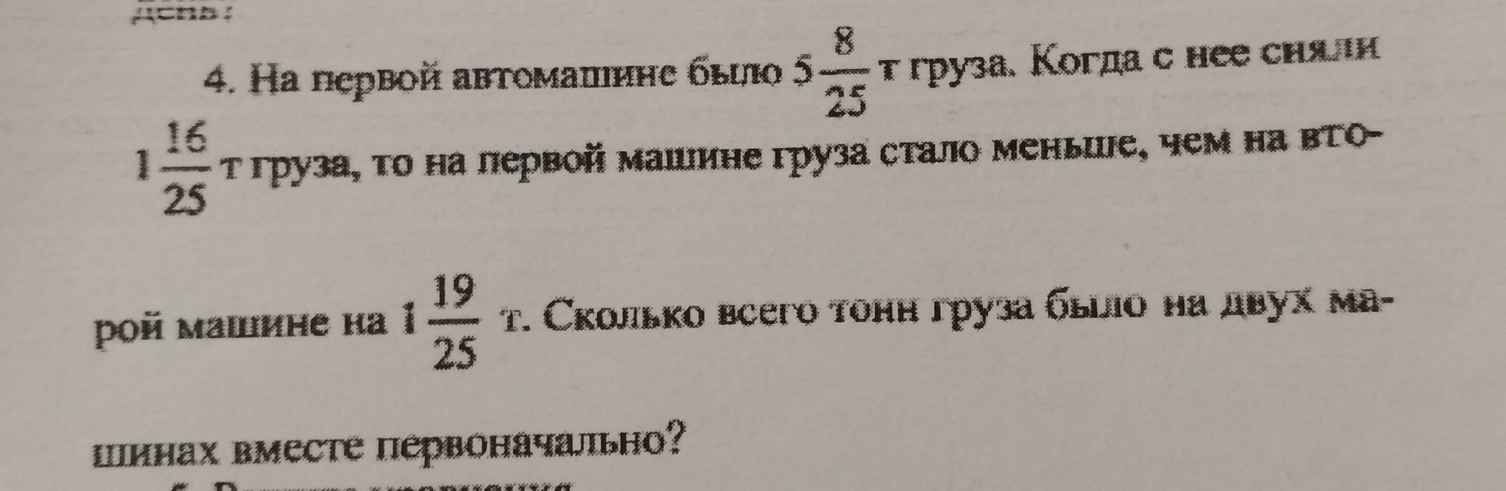 3 17/25 + 1 19/25 = 4 36/25 = 5 11/25т было на второй машине