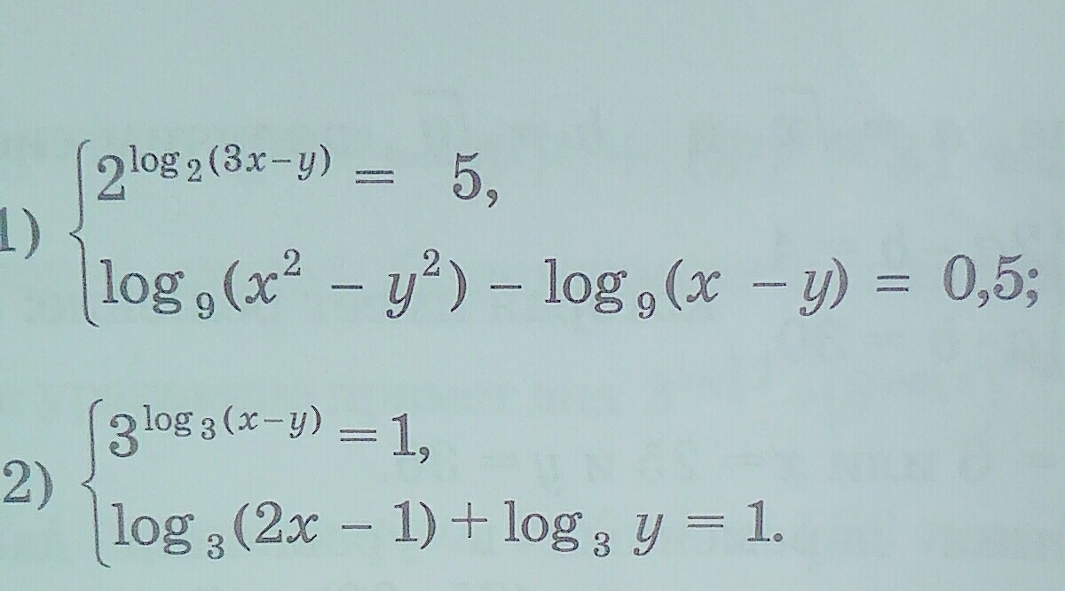 2) 3^log3(x-y) = X-Y=1 Отсюда y = x-1