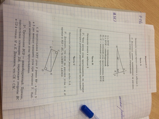 5. Док-во: СВ- секущая двух параллельных прямых МК и ВD следовательно из теоремы соответственные углы равны угол CMK = углу CBD. Тоже самое с секущей CD угол CKM = углу CDB. А значит угол CMK = углу CKM, тогда треугольник МСК равнобедренный и боковые стороны равны, т.е СК=СМ.