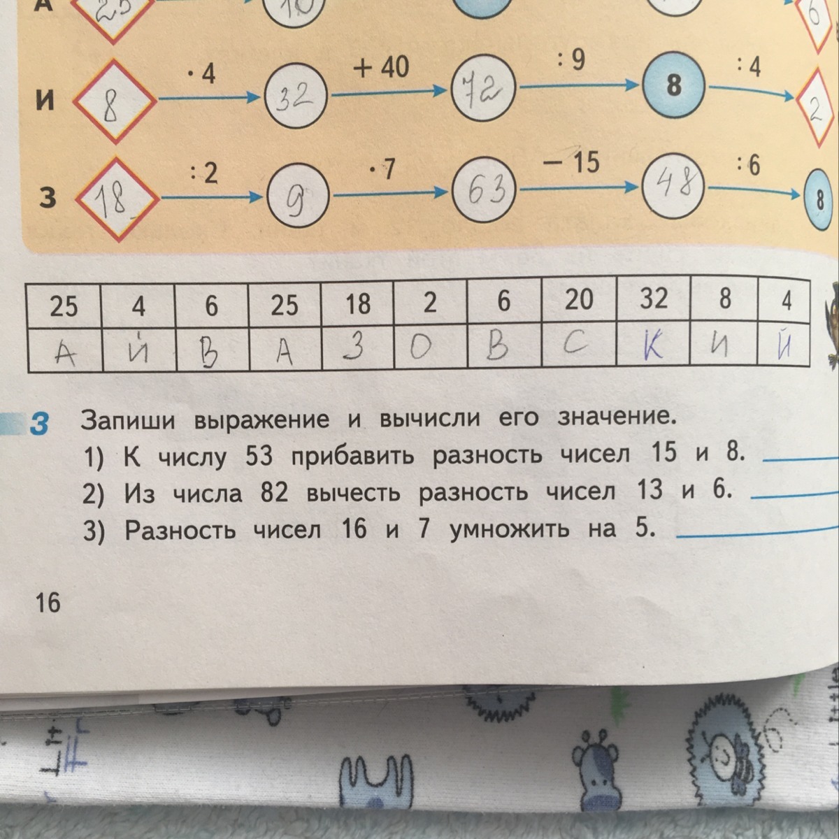 Запиши выражение и вычисли его значение. 1) К числу 53