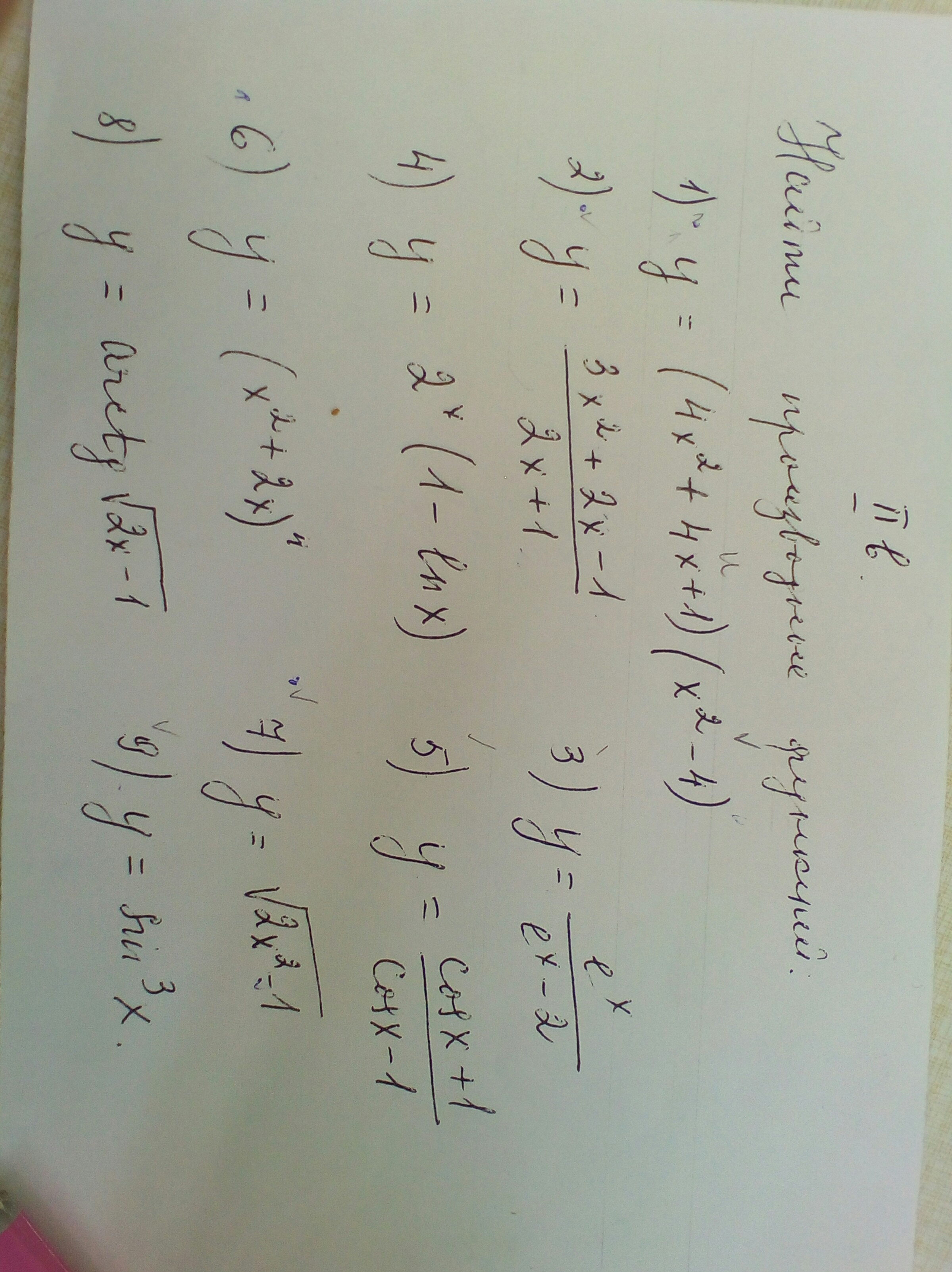 1) y'= (8x+4)(x^2-4)+(4x^2+4x+1)(2x) = 8x^3-32x+4x^2-16+8x^3+8x^2+2x= 18x^3+12x^2-30x-16