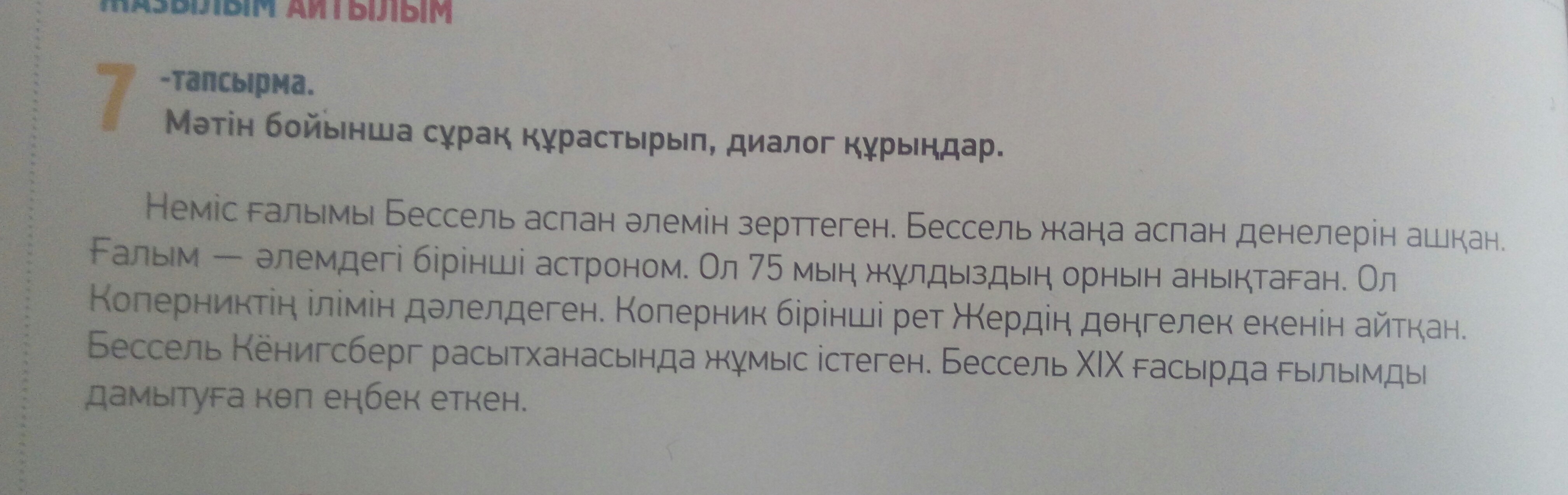 Помогите с казахксим языком там надо составить вопросы по этому тексту минимум 5-4. Вопросы на казахском.