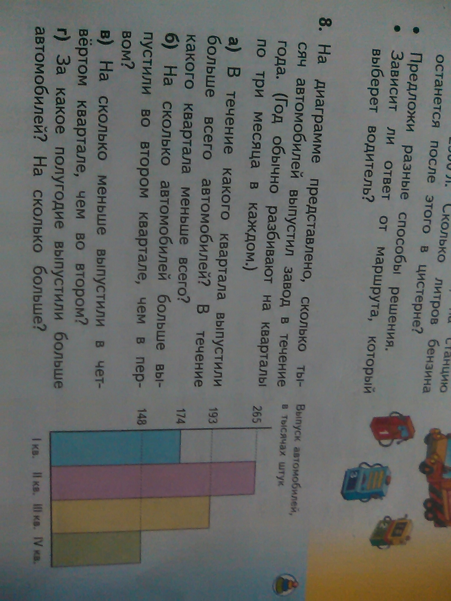 б)265-174(2кв-1кв)= 91( больше автомобилей за 2кв)