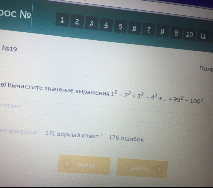 Итого получается -(1 + 2 + 3 + 4 + 5 + 6 + ...+100) - арифметическая прогрессия с а1 = 1 и d = 1
