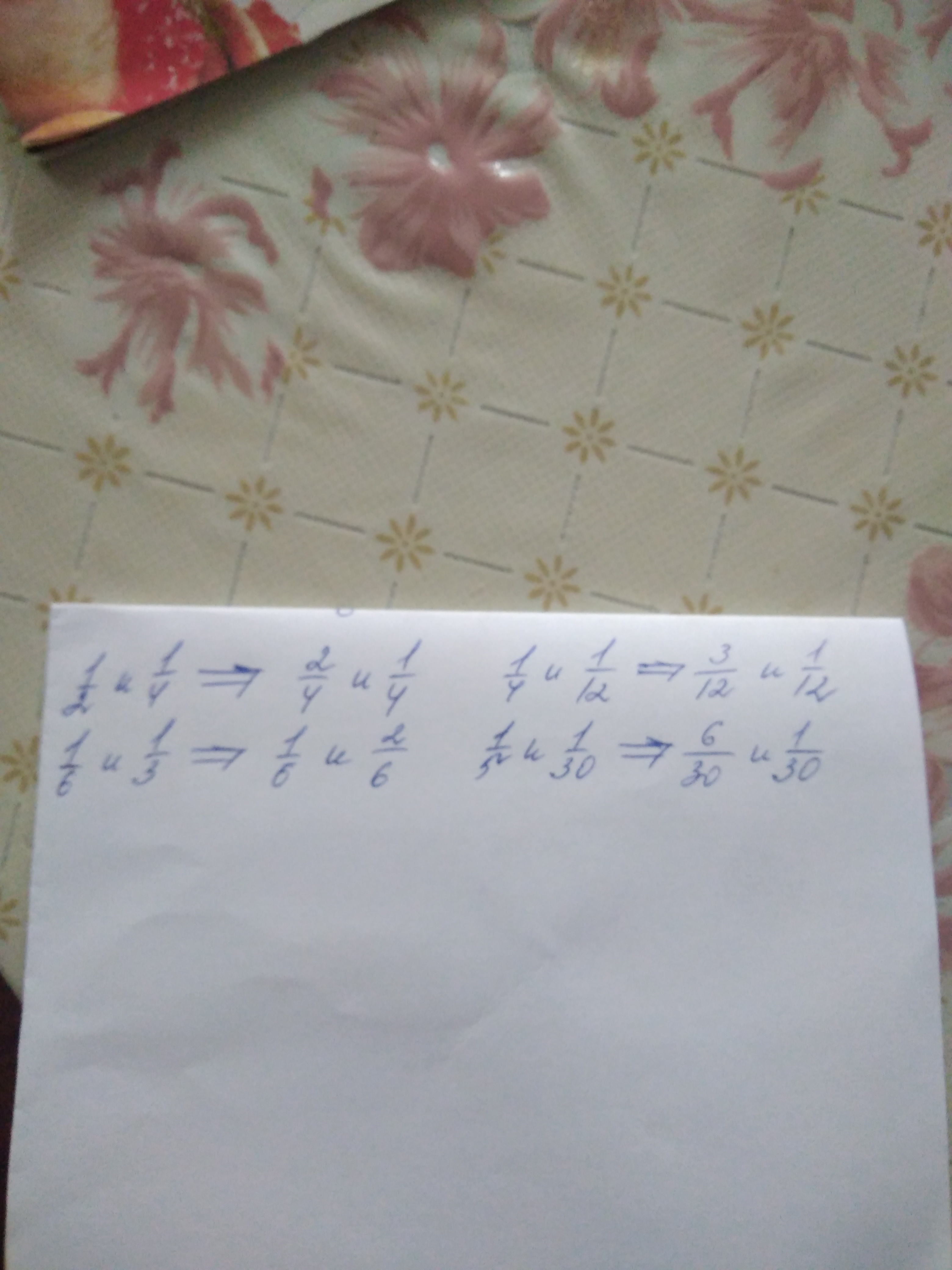 Даю 20 баллов. Приведите дроби к наименьшему общему знаменателю 1/2 и 1/4 1/3 и 1/6 1/4 и 1/12 1/5 и 1/30