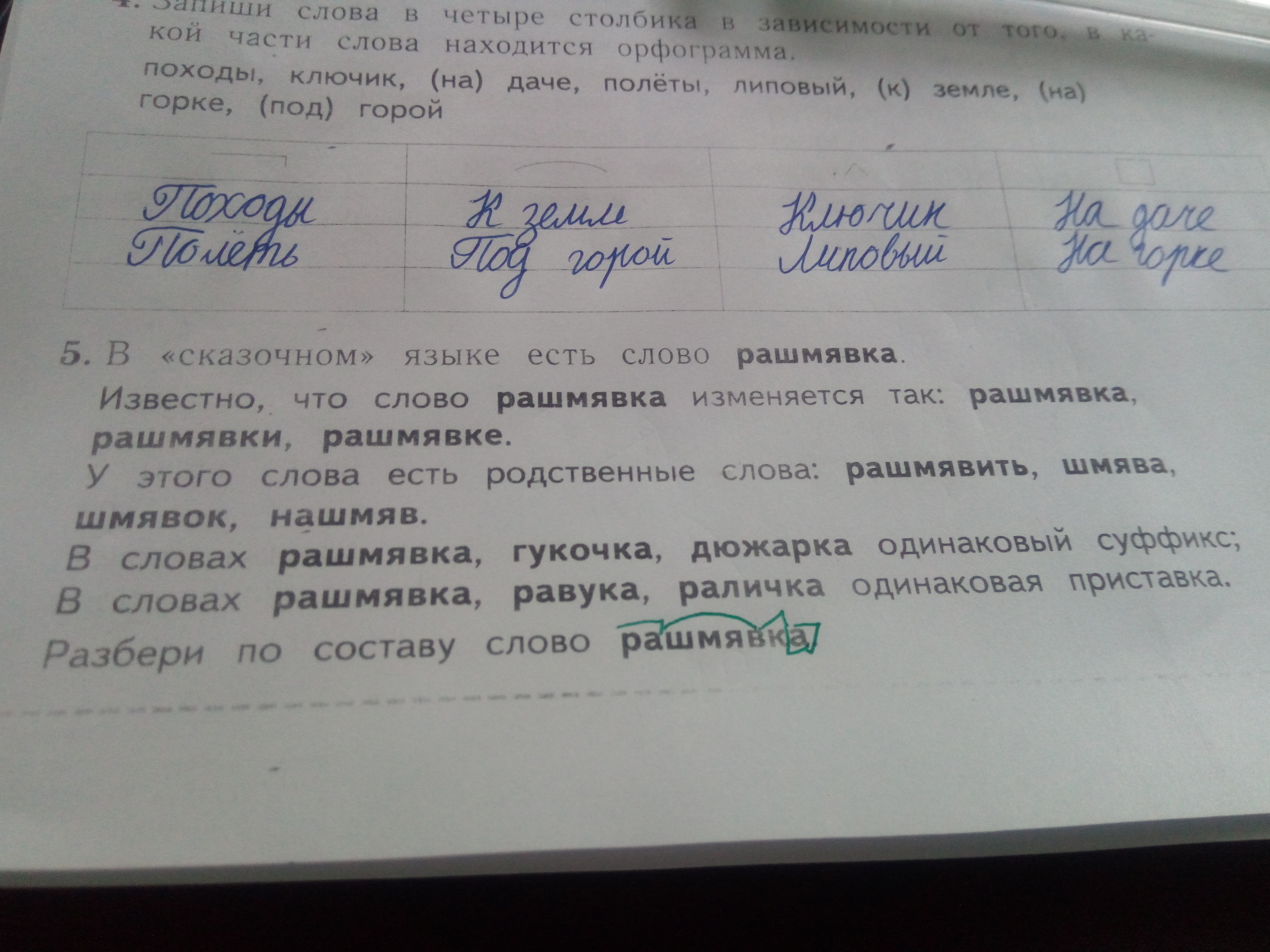 Раш это приставка,мяв корень,к суффикс а окончание
